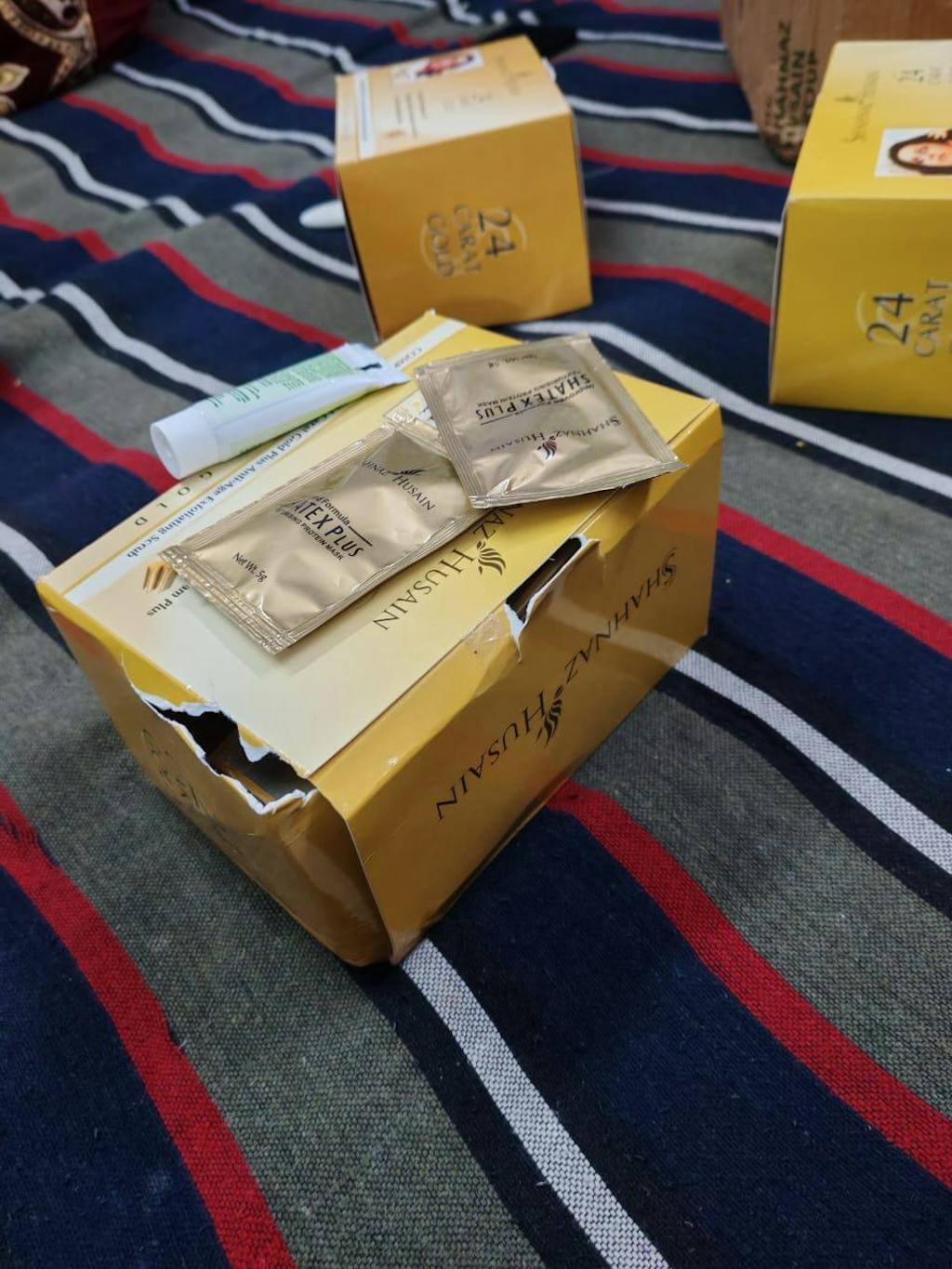 Shahnaz Husain 24 Carat Gold Kit Consists Of Gold Plus Skin Radiance Gel, Moisturising Cream, Gold Plus Beautifying Mask, Anti-Age Exfoliating Scrub, All Of Which Help The Skin To Improve Its Texture And Delays The Visible Ageing Signs, Giving The Skin A Youthful Glow.